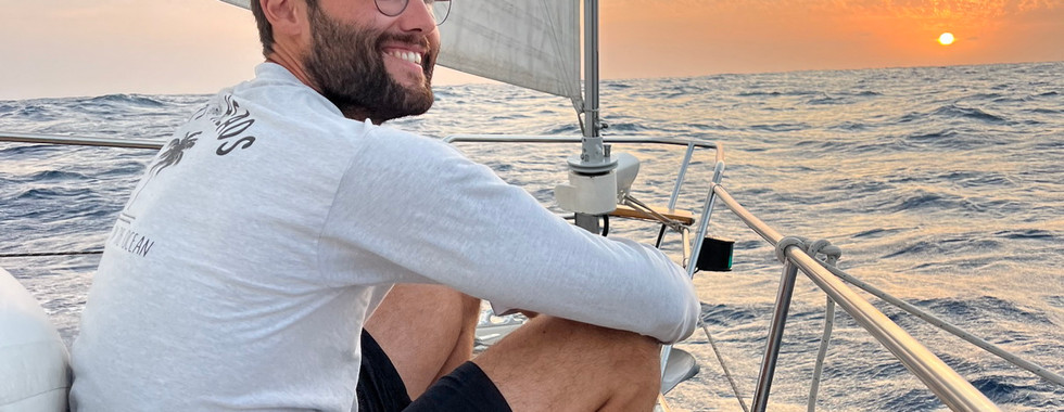 As we cross the middle point of our journey, time has started to feel unreal, distorted. Hours go by, mile after mile. Days go by, day shift after night shift after day shift again. The sun rises from our port aft side and sets by diving right in front of our bow, as Abayomi sails towards the West, with no rest and no hesitation. The view all around us alternates the blue of the Ocean with the blue of the sky, following the rhythm of the waves. At night, a million stars light up the sky, and as many bioluminescent micro-organisms light up the waves. Life on passage feels at time too busy, at time too slow, always a bit on hold from the rest of the world. Things get repaired, meals cooked, dishes washed, logs noted. Emotions and thoughts get amplified. If you let them, they resonate with the immensity of the blue around and, sometimes, come back with increased clarity. Abayomi slows down, then accelerates again, following the changes in the wind, the sails, the current. It feels like a lifetime ago that we started this journey as six complete strangers, so different from each other. I like to think that each one of us, in their own way, will bring this journey with us for life.