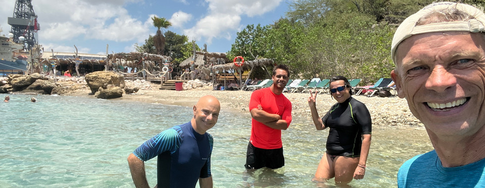 Vlak naast het booreiland ligt Tugboat beach. Een mooie snorkel plek met een oude sleepboot op 4 m diepte. Makkelijk om op te snorkelen. En wie komen we in de beach bar tegen. Hendrik. De Zweed van sv Cornelia. Hij heeft er een baantje gevonden bij de verhuur van snorkelspullen. Gezellig. We snorkelen en zwemmen wat.