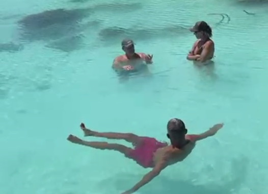 We wandelen naar het andere restaurant maar die is dicht. In een perfect turquoise kraakhelder water koelen we af. We willen niet dat Josie weggaat dus ketenen we haar vast aan de meerboeien.