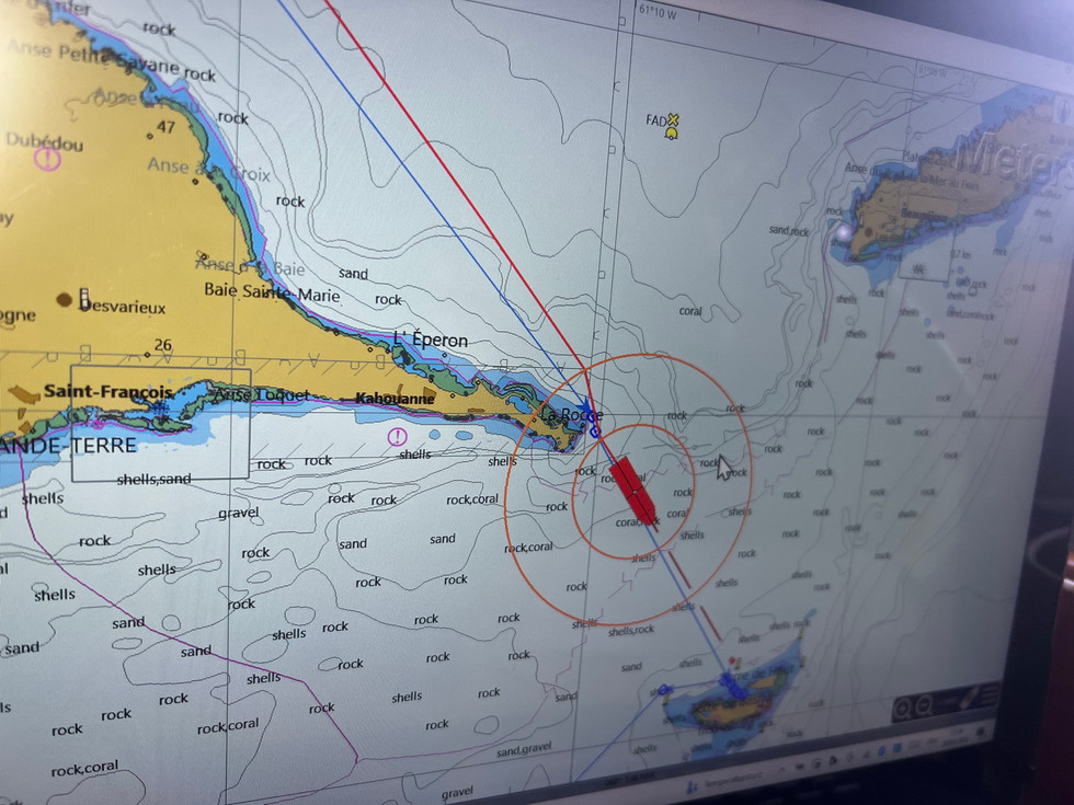 Vandaag beëindigen we de Noordelijke route in de caribbean. We gaan rond Guadeloupe en verleggen de koers naar het zuiden. De meest noordelijke positie die we in de caribbean bereiken dit jaar is 16-32 N. We varen rond het noordelijkste puntje Pointe de la Grande Vigie op zaterdag 21 April 2024 om 0736.