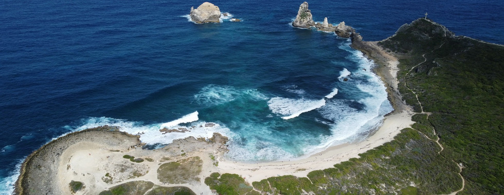 Vanaf nu gaan we weer Zuid, tot Martinique. Daarna naar het Westen. Op het moment dat we rond de noordelijkste kaap van Guadeloupe komen draait wind gunstig. Halve wind /aan de wind, 12 knopen. Perfect. Onderweg passeren we Point des Colibris /Anse de Chateaux waar we van de week op het puntje hebben gestaan. Een machtig gezicht en gevoel om er nu langs te varen.