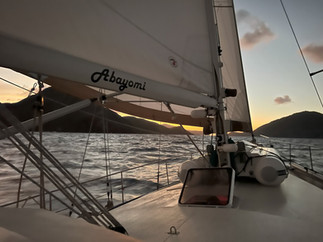 We vertrekken om 0415, nog voor de zonsopkomt naar Les Saintes, Guadeloupe. Zo'n 90 mijl noordelijk.