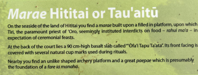 Via de oostkant rijden we over de ringweg rond het eiland. Een stokbrood en pasteien bij de bakker en de supermarkt zijn een extra ontbijt. We rijden naar de oudste ceremoniële historische site van Frans-Polynesië, Marae Taputapuatea. Hiervandaan werden veel expedities gemaakt door de Polynesiërs naar de andere atollen en eilanden. Hiervan werd de steen meegenomen die als eerste steen werd gebruikt voor het stichten van andere nederzetting.