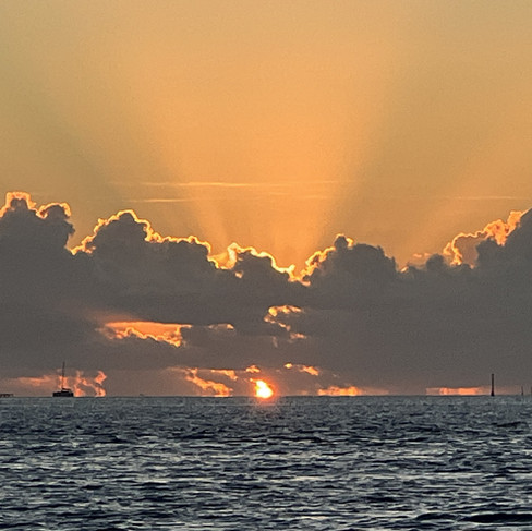 Een leuke snorkel. Op de terug weg naar de boot begroeten we Sv Tino Pai. Ook zij zijn op de ankerplaats aangekomen. Morgen een gezellige bijeenkomst. In de avond ben ik uitgenodigd door Ingo en Karin. Eerst sundowner natuurlijk. Karin heeft een heerlijke maaltijd gemaakt met prei schotel, aardappelen en gehaktballen. Een gezellige avond met een green flash.