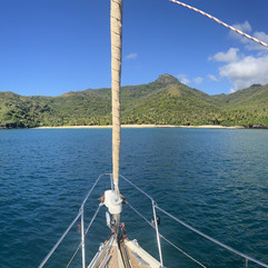 Deze morgen gaan Kurt en ik langs bij Sharon. Ze heeft aardig wat issues met de motor en veel andere technische problemen. We denken allebei dat het beter is als ze probeert de belangrijkste in Hiva Oa op te lossen. Daar is de meeste kans op een goede monteur. Om 1200 gaan we anker op. Niet voordat we alle roll stoppers en passaatbomen hebben weggehaald.