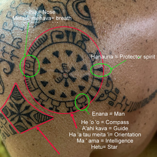 Na de koffie eerst mijn witte lange mouwen shirt uitwassen. Die heeft in de Vanish gestaan. Het heeft het grootste deel van de nacht geregend. Langzaam wordt het nu droog. De overtollige stof knip ik van de dinghy cover. De Velcro die we op de Dinghy hebben geplakt is aardig gedroogd. Wel op sommige plekken niet helemaal vast doordat het zo vochtig was vannacht. We gaan het eerst maar eens proberen. Ik haal de motor op die nog bij Dan en Alison aan het hek hangt. Dan gaan we de laatste boodschappen doen. Wat vlees, bier, en andere verse producten. Heen kunnen we liften en terug krijgen we een lift van de supermarkt. Ook even langs bij Kaha om te laten zien dat de tatoeage netjes geheeld is. Ondertussen heb ik een samenvatting van de betekenis van alle symbolen in de tatoeage gemaakt