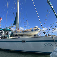Na een ontbijtje met eieren en stokbrood komt Dan me ophalen om verder te gaan met de dinghy covers. Daniel brengt Josie aan de wal omdat mijn dinghy bij hem aan boord staat. Josie gaat wat boodschappen doen. Alison en ik zijn de hele dag bezig met de dinghy covers. Alle details eerst uit knippen en passen. De hot knife van Alison begeeft het. De resterende details moet ik bij mij aan boord uitsnijden. Als alle patches klaar zijn naaien we ze op de covers. Alles ziet er top uit. Wel een hele dag werk. Josie maakt voor ons allemaal avondeten. De schat. Ik kan me bijna geen betere bemanning wensen. Dan en ik gooien de dinghy te water terwijl Alison de laatste hand legt aan de covers. Samen met Josie hijs ik de dinghy aan boord van Abayomi zodat we de Velcro op de rand kunnen lijmen. Nu 48 drogen en de covers kunnen op de boot. Om 1830 komen Dan en Alison mee-eten als bedankje voor het helpen met de covers maken. Josie heeft heerlijke Skip Jack straks gemaakt met noedels.