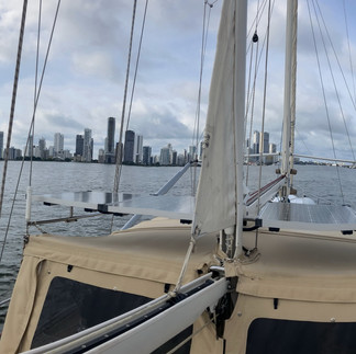 Vandaag staan we vroeg op, om 0530. Bij daglicht willen we vertrekken. Eerst de extra lijnen die nog over zijn aan bakboord weghalen. Dek nog een keer afspuiten en koffiezetten. Net z’n drieën gaat het redelijk snel. Rick en Karien zijn geen zeilers dus ik moet alles uitleggen. Het is wel lastig om alle termen zo snel uit te leggen. Dit is de zoveelste keer in een paar maanden met nieuwe bemanning. Ze willen graag leren maar ik merk aan mezelf dat het me veel moeite kost om alles voor een dag weer uit te leggen. De volgende bemanningsleden staan in Cartagena ook al weer te dringen. Kan ik weer op nieuw beginnen. Zou fijn zijn als ze een paar maanden aan boord blijven😊 Bij de laatste lijnen laat Rick de anker meerlijn vallen en ik de laatste achterlijn. De weinige wind staat goed en we drijven zo de box uit. Heel netjes samen gedaan. Erg fijn om zoveel hulp te krijgen van Rick en Karien.